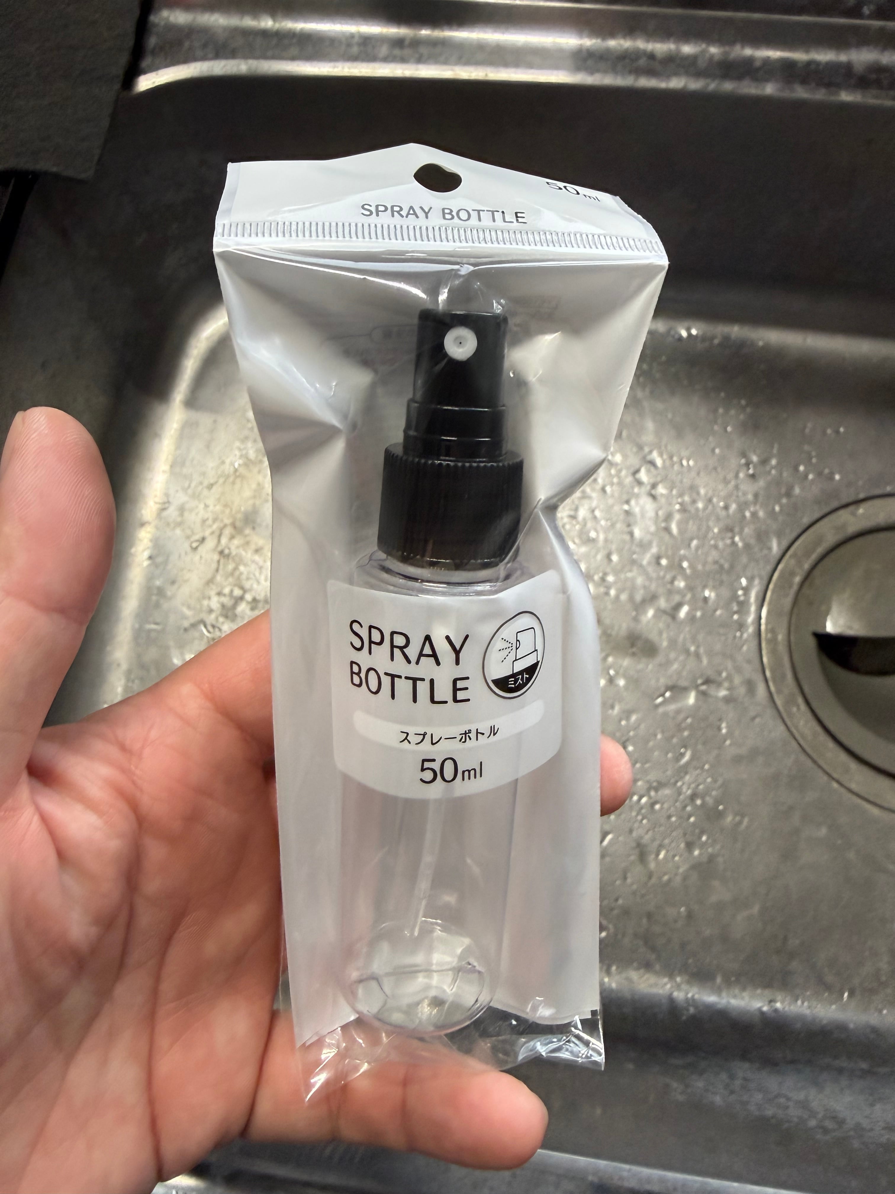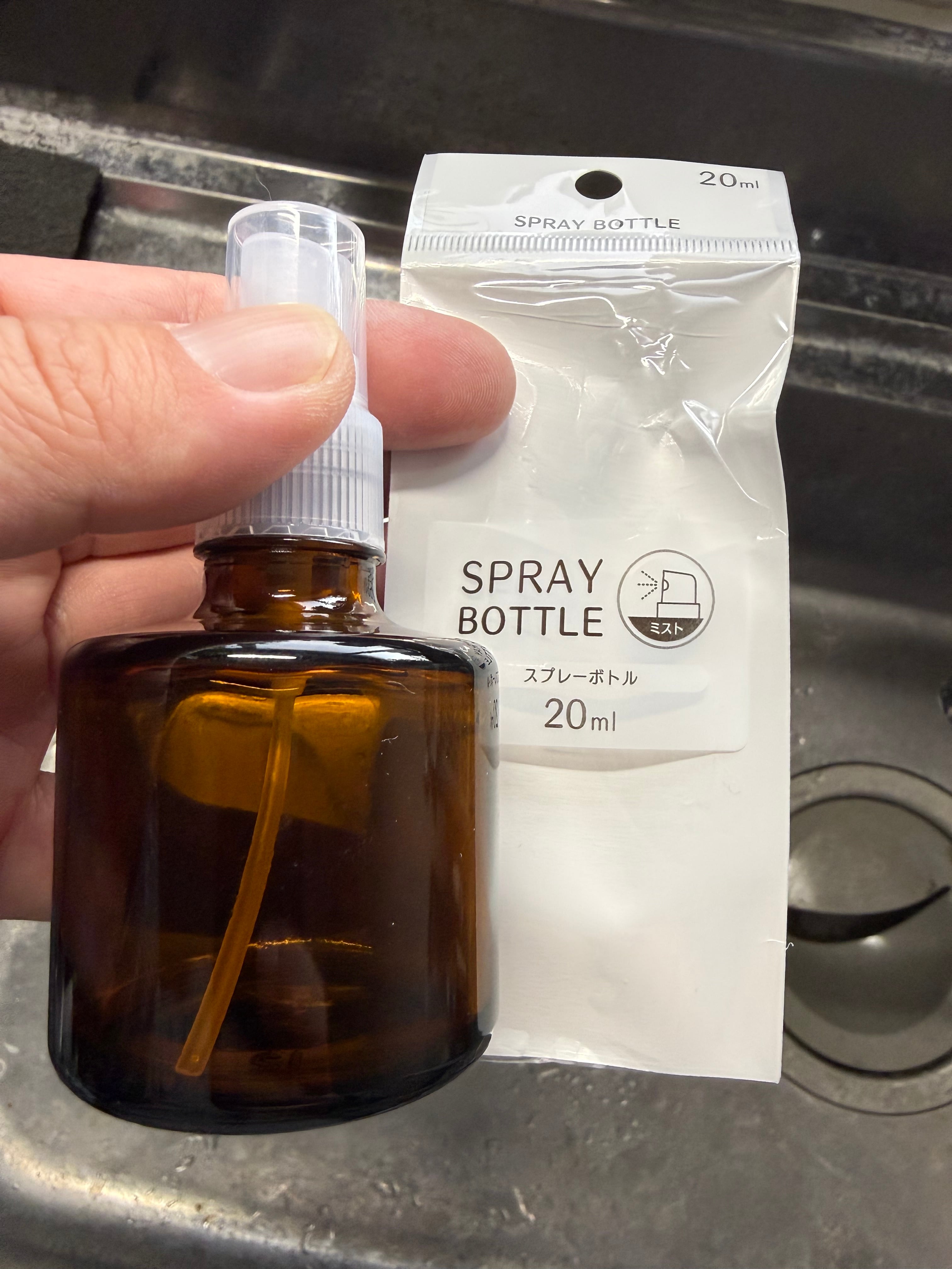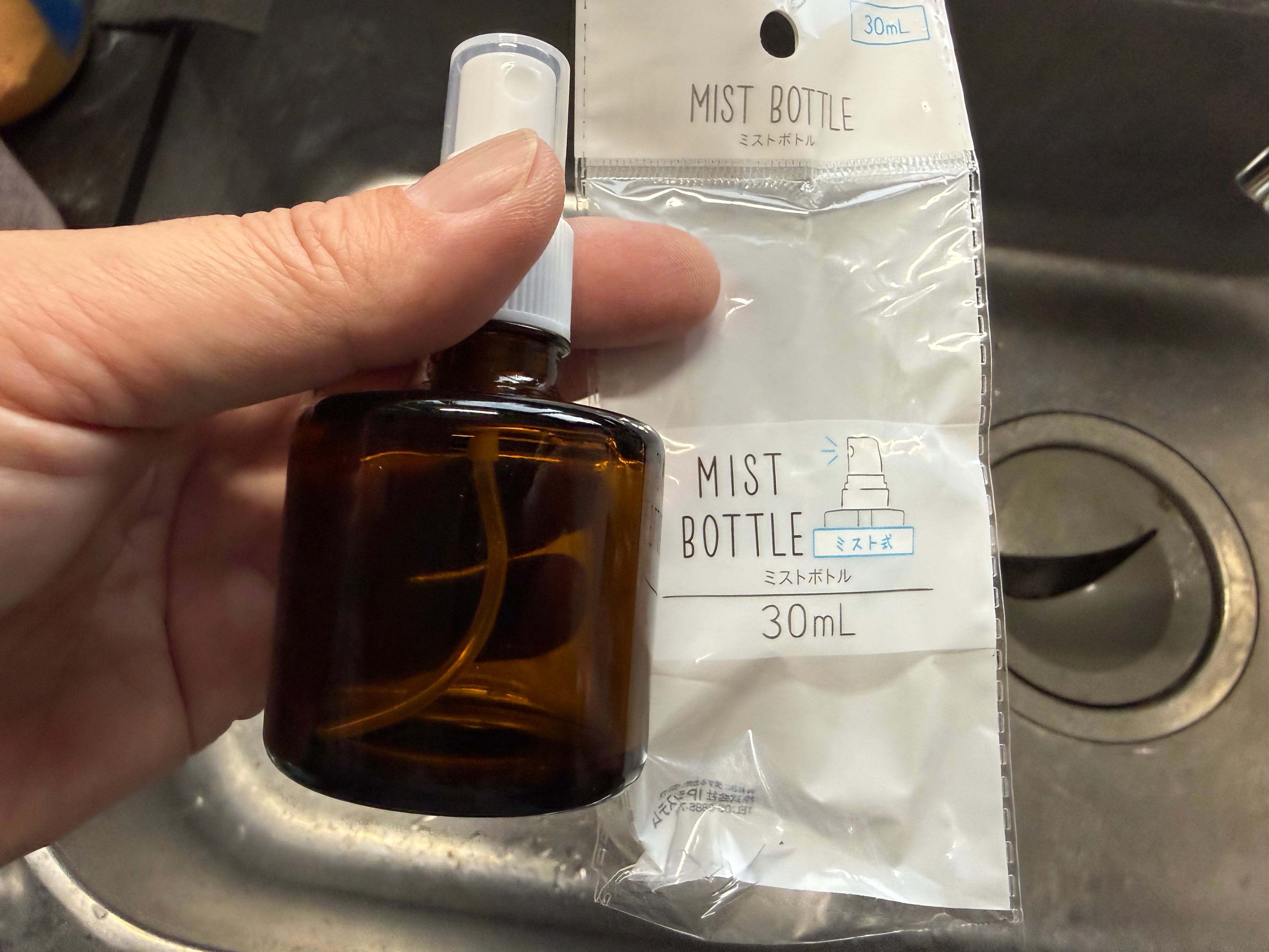 100均のセリアのスプレーボトルのノズルが丁度ネジ径が一緒なので中蓋、キャップを外して付け変えれば使えます。